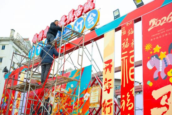 2月9日,滁州第十届南湖灯会进入现场搭建阶段,施工人员在南湖公园有序绑扎、组装灯组,水面与环湖灯组框架初现雏形。灯会将于2月14日亮灯,为市民与游客献上一场兼具传统韵味与现代光影的新春视觉盛宴。